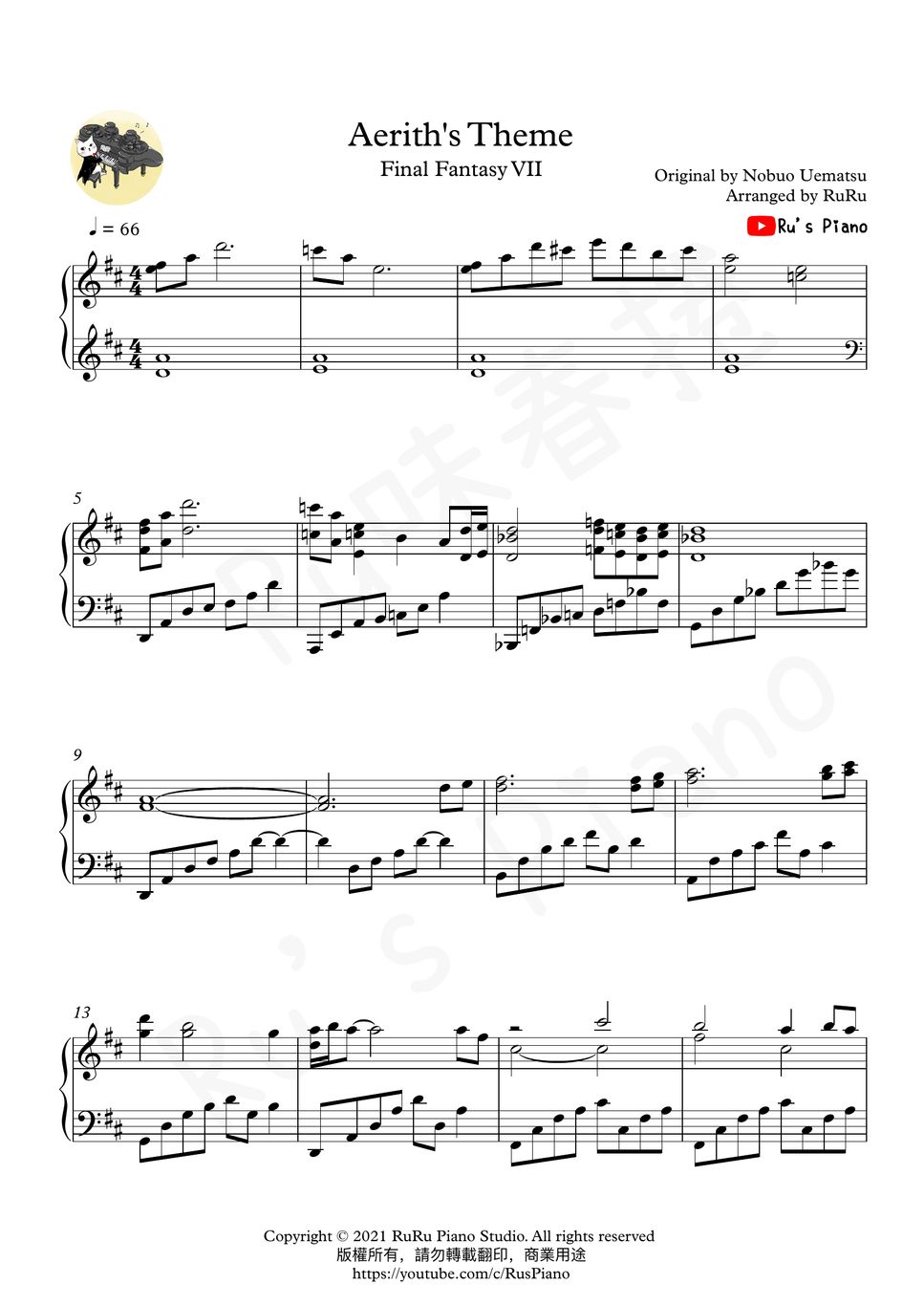 エアリスのテーマ最終幻想Ⅶ聖子降臨BGM鋼琴譜檔(五線譜、雙手簡譜、數位譜、Midi、PDF)免費下載