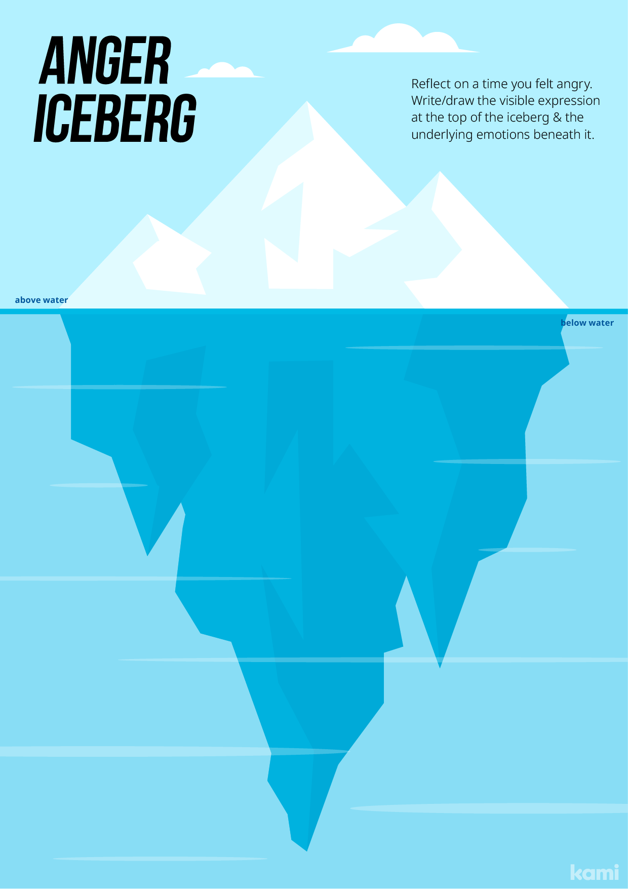 Sometimes feelings can be like an iceberg, and the reasons for that feeling can remain hidden beneath the surface. Anger iceberg worksheet the anger iceberg is the idea that anger is often just the visible part of a deeper emotional experience. This activity helps explore what. Can you think of a time you expressed anger in order to conceal another.
