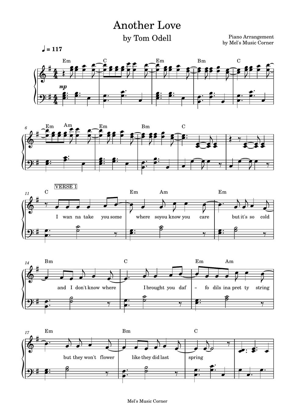 Tom Odell Another Love (piano sheet music) Sheets by Mel's Music Corner