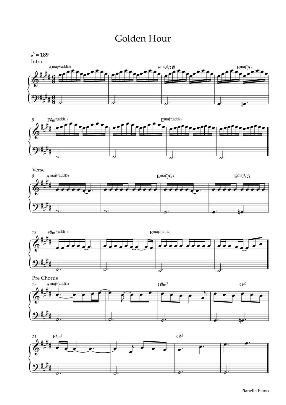 JVKE golden hour (EASY PIANO SHEET) Sheets by Pianella Piano
