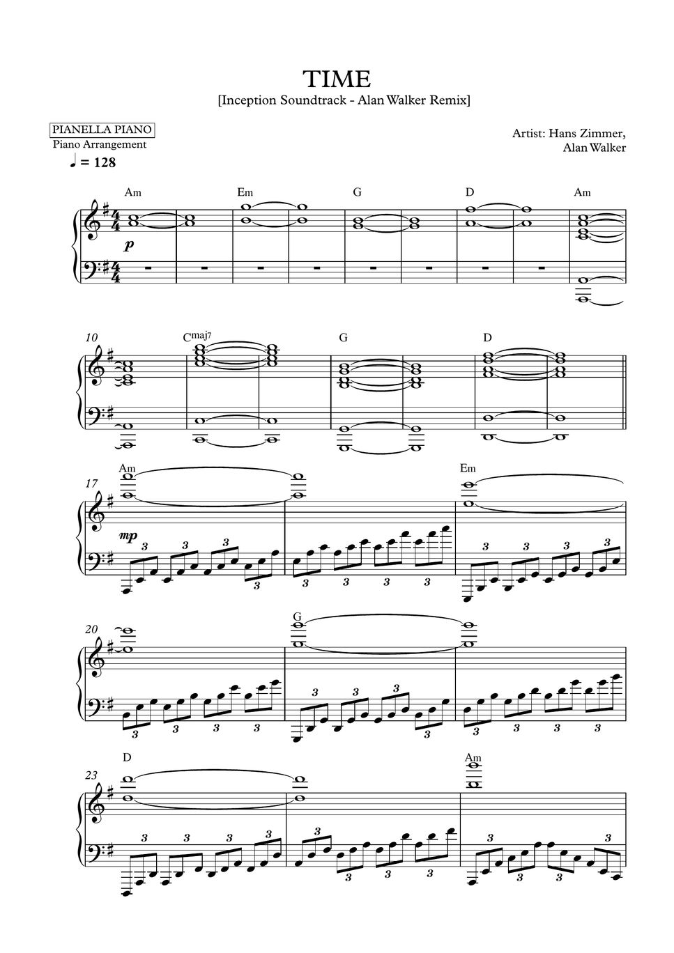 Alan Walker, Hans Zimmer TIME (Inception Soundtrack) (Piano Sheet) 楽譜