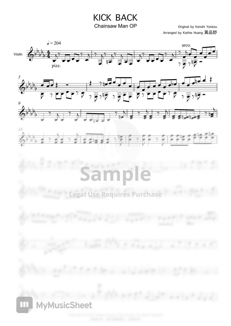 米津玄師 KICK BACK (鏈鋸人 OP) 악보 by Kathie Violin