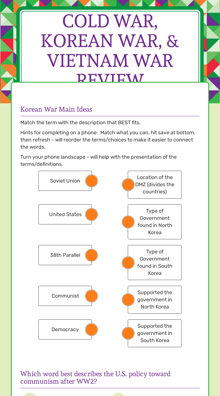 Cold War, Korean war, & Vietnam war Review Interactive Worksheet by