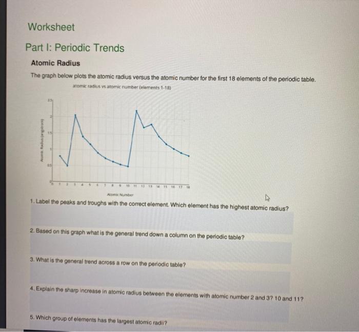 Solved Worksheet Part I Periodic Trends Atomic Radius The