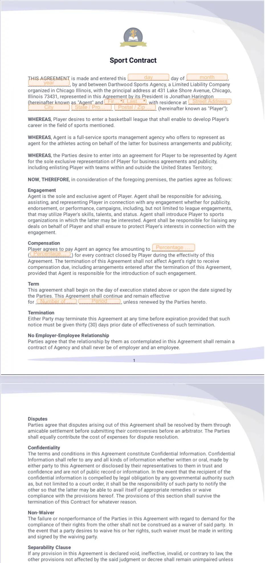 Sport Contract Template Sign Templates Jotform