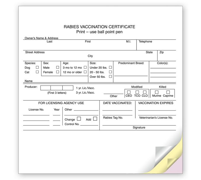 Business Forms Numbered Vet Rabies Vaccination Certificates 7718