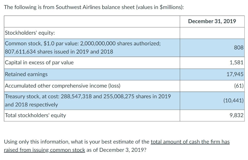 (Get Answer) A Condensed Balance Sheet For Southwest Airlines And A