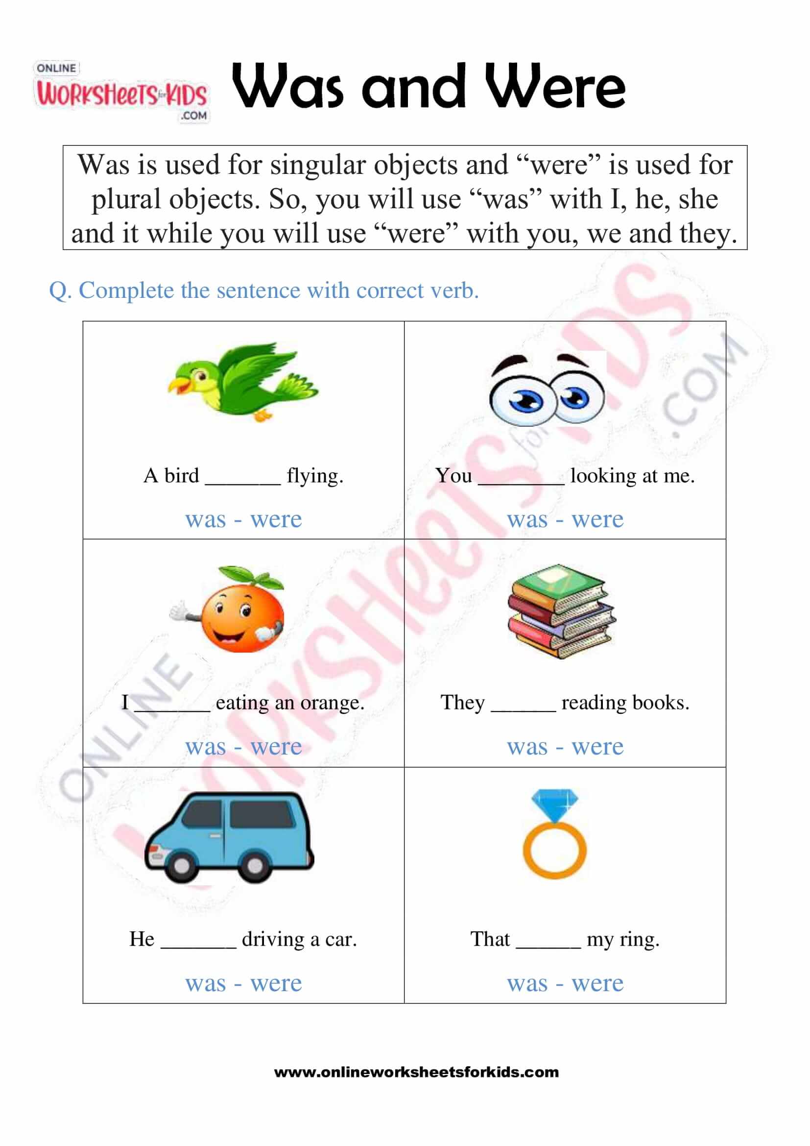 Students will look at the sentences and write was were and. Hi :) it is a worksheet about was and were. Are you looking for clear instruction on when to use was and when to use were?